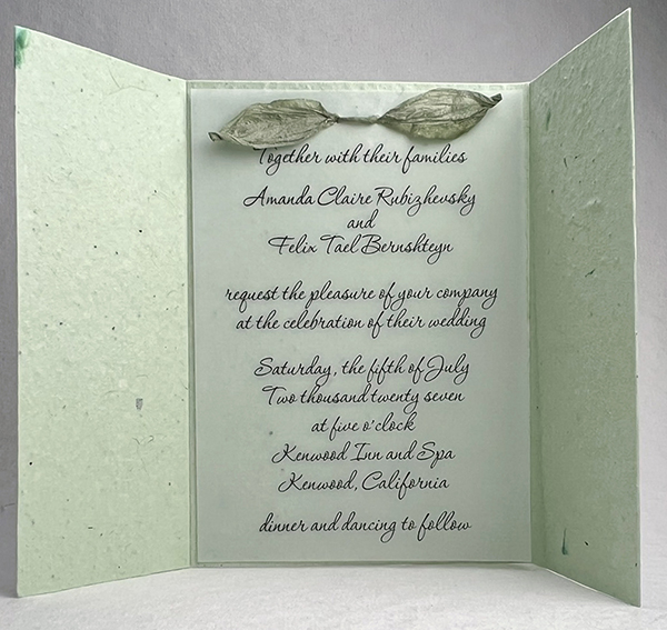 Each kit includes enough eco-twist to finish the invitation with an exterior wrap like what is shown below.