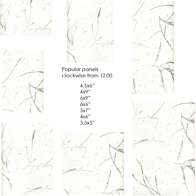 Pictured here are different invitation sizes. These common panel, bifold and single fold invitation styles are show here to illustrate our most popular sizes. Each invitation can be ordered with a variety of print options and can also be ordered blank. We can tear these to size for you or you can order our full sheets and tear them to size on your own (using our handy online instructions).