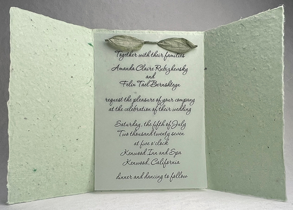 Each kit includes enough eco-twist to finish the invitation with an exterior wrap like what is shown below.