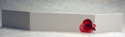 We secure these at the back of the invitation using a simple application of paste or a 1/2" square photo mounting tab. You should make sure that when you apply the band it can slide off the top or bottom of the invitation so that your guest will not have to struggle. By coordinating your paper and ribbon colors here you can continue the theme you want to establish for your event.