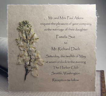 Pictured below are a few of the many options that you have for creating a pressed flower invitation on our site. We offer a variety of sizes, flowers, and orientation on lotka paper.