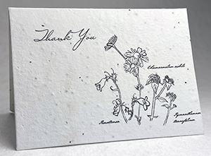 These cards are printed on our handmade cotton paper embedded with wildflower seeds.
