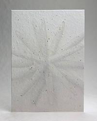 Our handmade papers are formed one at a time with a mould and deckle. They are made with 50% post industrial waste and are 100% tree free, acid free paper. Embedded in this stock is our unique North American Wildflower seed blend. The seeds will need four hours a day of direct sunlight with constant watering until established. The plants can grow to as tall as three feet. The seeds include Snapdragon (annual), Petunia (annual), Beardtongue (perennial), Poppy (annual), Mountain Mint (perennial), Chamomile (perennial). This blend is specifically designed to allow us to print directly onto the handmade seed paper and for safe propagation across North America.