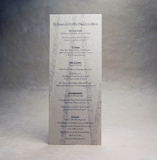 Pictured below are program cards with a variety of art. These cards are also perfect for menus for your event dinner. We offer them on a lotka paper that is embedded with wildflower seeds.