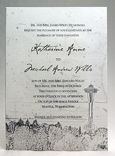 If you have already purchased paper or envelopes from another company, we are happy to simply print a vellum overlay for you. If you would like to print your own invitations but wish to order paper from us, great! We welcome all orders.
