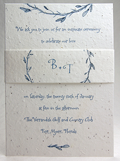 Most of our papers contain flower seeds; these invitations become a plantable favor that will grow flowers and bloom into memories of your special event.