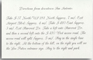Most couples choose to include directions with their invitations to help ensure their guests arrive promptly. Often you can combine a map, written directions and accommodation information all on one card. Etiquette directs you to make the whole invitation very simple but we recommend that you avoid a separate mailing. This will save trees, reduce waste and cut down on costs!