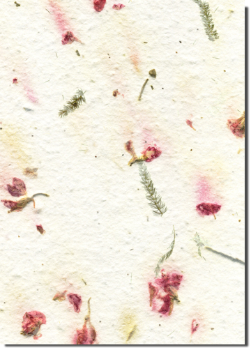 These sheets of sturdy handmade paper are formed one at a time with a mould and deckle. They are made with 100% post industrial waste and are 100% tree free, acid free paper.