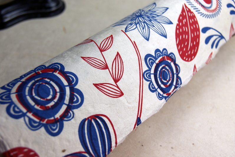 Blue and Red Flower Print Paper